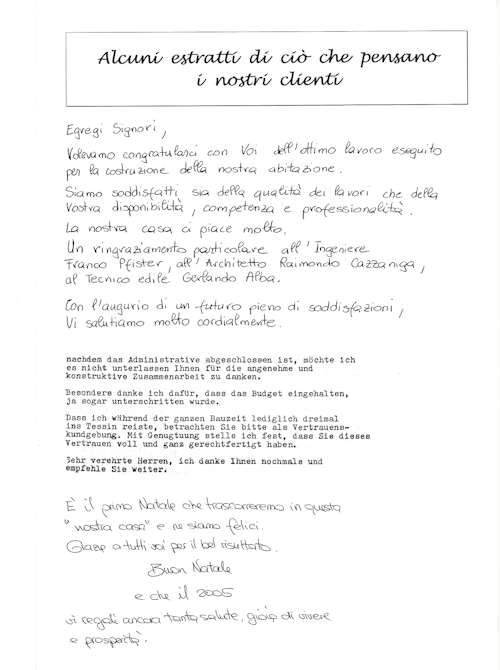 Referenze: Alcuni estratti di ciò che pensano i nostri Clienti… Ricerca per: Le nostre proposte:Case in costruzione Terreni disponibili Foto di realizzazioni recenti Archivio fotografico:Su un piano Su due piani Moderne Bifamiliari Ville Speciali